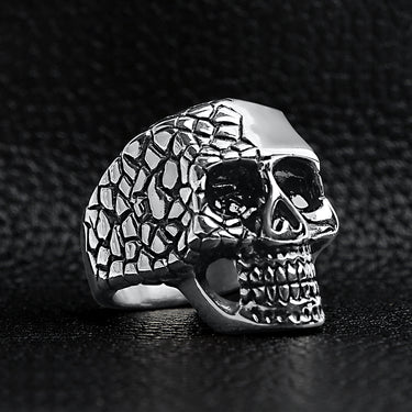 Den grossistdetaljerade cracking Skull-ringen i rostfritt stål är gjord med en egenutvecklad blandning av 316L kirurgiskt stål.
