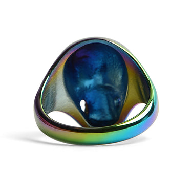 Grossisthandeln i rostfritt stål Rainbow Skull Ring är gjord med en egenutvecklad blandning av 316L kirurgiskt stål.