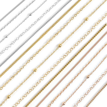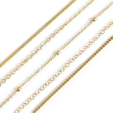 Chain Styles Included: 2 mm Box Chain, 2.5 mm Curb Chain, 2.5 mm Loop Chain, 2.5 mm Satellite Chain, 3 mm Circle Cable Chain