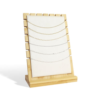 - Kedjedisplay i naturligt trä och grädde för att visa alla stilar som ingår i detta kedjepaket