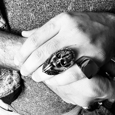 Ta vara på varje dag du har och lev livet fullt ut. Denna fantastiska polerade skäggiga ring i rostfritt stål är gjord av högkvalitativt rostfritt stål och har bevisat glädja kunder över hela världen. Det är en polerad skäggig skalle som grips av benhänder, och den symboliserar, tiden är begränsad, så gör det bästa av det. Ringen är även prydd med svarta emaljdetaljer. Det är ett måste för alla män som vill se snygga och coola ut.