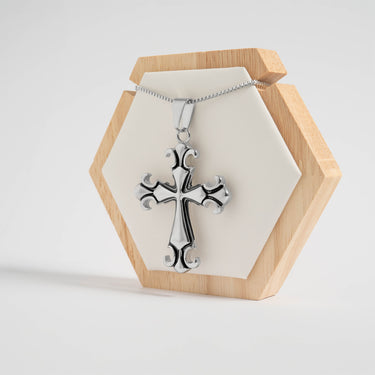 Det här vackra korshänget i rostfritt stål är ett moderiktigt sätt att visa din tro och övertygelse. Tillverkad av högkvalitativt rostfritt stål, är detta hänge resistent mot smuts, vilket säkerställer lång livslängd och vardagligt slitage. Perfekt för lager med andra halsband eller att bära ensam, detta hängsmycke kompletterar en mängd olika stilar och outfits.