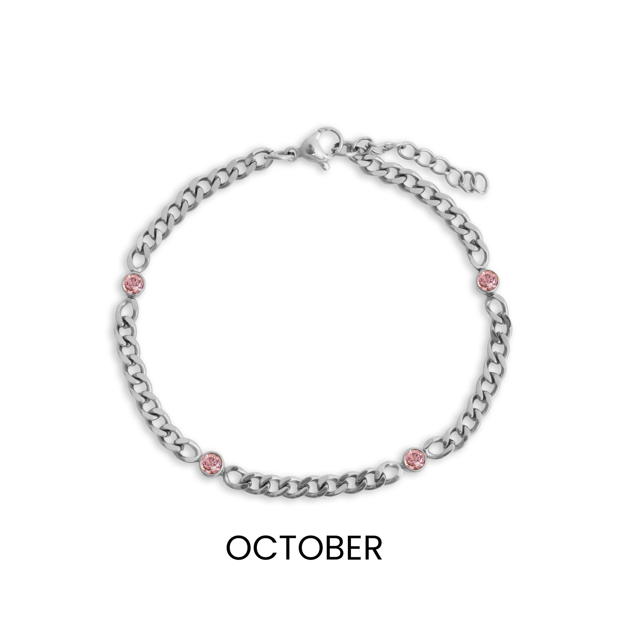 Stainless Steel Station Birthstone Bracelet / BRJ1109