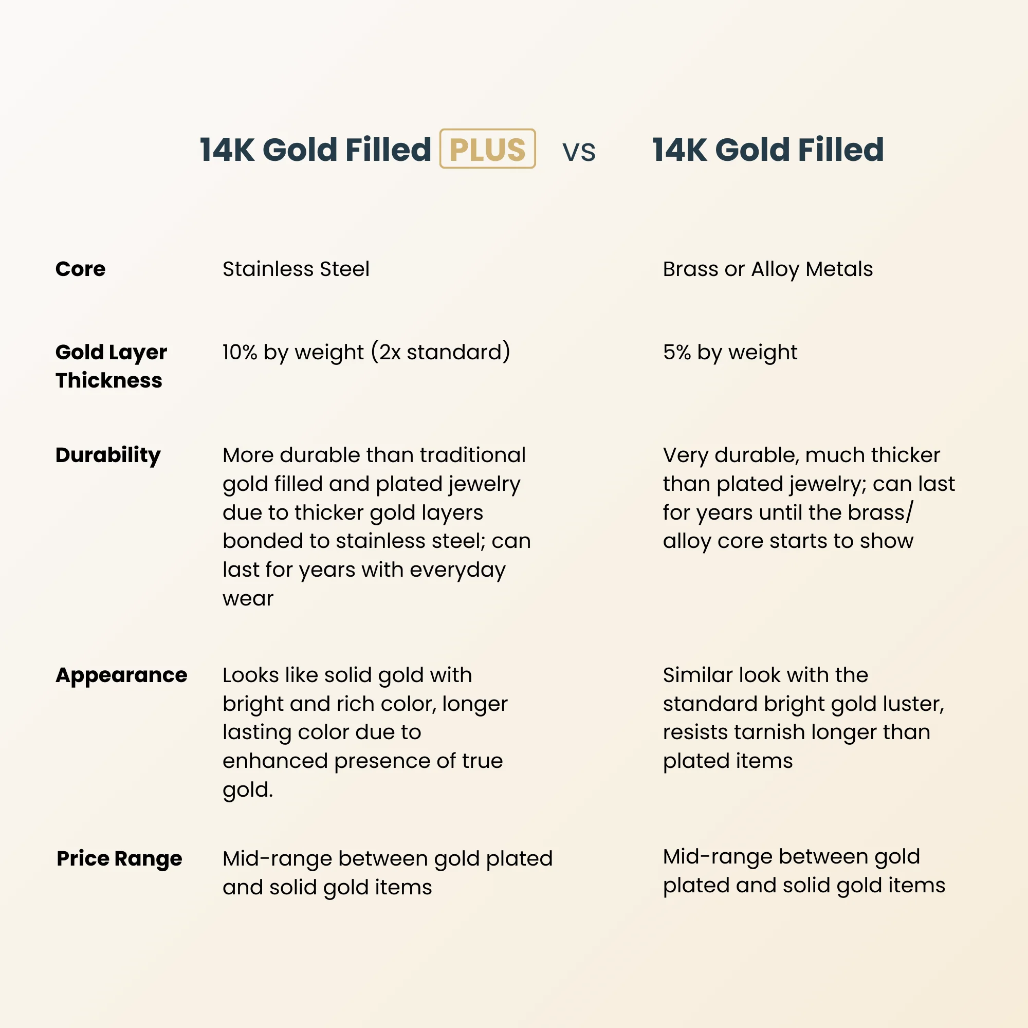 - Premium 14K Gold Filled PLUS construction: lasting luster resists tarnish and everyday wear.