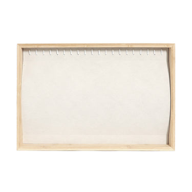 Använd denna display i ditt smyckesfodral, bänkskivor, festival- och mäss-pop-ups eller bara för att hålla dina smycken säkra och organiserade. Dessa enheter är staplingsbara, så det går snabbt och enkelt att sätta upp och riva ner. Vi valde en neutral kant i massivt trä för att framhäva alla varianter av smycken, tillsammans med den krämfärgade mockan ger dina smycken en mycket exklusiv look och känsla. Detta kommer att säkerställa att du kan få en bra avkastning på dina visade smycken.