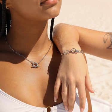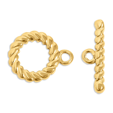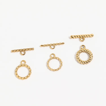 Detta eleganta och hållbara flätade växellås i rostfritt stål är perfekt för en mängd olika smyckesprojekt. Den är stark och säker, vilket gör den idealisk för halsband och armband. Anslut bara stången till ena änden och öglan till den andra. Stången går genom öglan och skapar en stark anslutning som håller dina smycken på plats hela dagen. Tillverkad med vår egenutvecklade blandning av 18K guld PVD-belagt rostfritt stål av kirurgisk kvalitet designat för vardagsbruk, dina kunder har kvalitet, stil och komfort som håller.