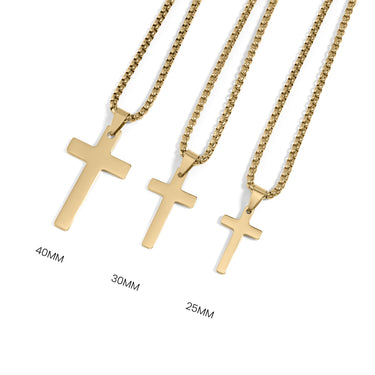 Detta 18K guld PVD rostfritt stål korshänge med rundad boxkedja kombinerar tidlös symbolik med modern elegans. Korshänget ger en rik, varm glöd som är både hållbar och snygg. Tillsammans med en sofistikerad rundad boxkedja ger detta halsband en elegant, modern atmosfär samtidigt som den behåller en klassisk maskulin känsla. Gör den till en del av din vardagsgarderob för ett extra lager av trosbaserat skydd.