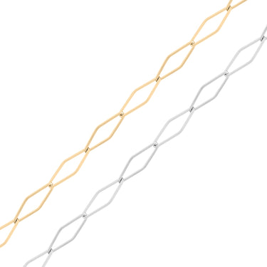 Diamond Paperclip Link Chain är den perfekta kedjan för att dra in nya kunder med sitt unika och enkla utseende. Dina kunder kommer att älska att se denna häftklammer utställd i din butik! Denna kedja är ett toppval för charmbars, hattkedjor och anpassade smyckesdesigner.