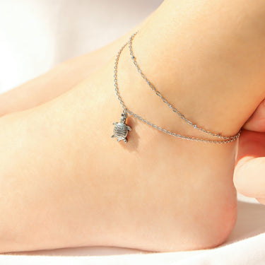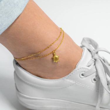 Dyk in i elegansen med denna 18K guld PVD rostfritt stål havssköldpadda charm anklet. Har en bedårande havssköldpaddas charm som symboliserar lång livslängd och uthållighet, vilket ger en touch av kustnära skönhet till din stil. Perfekt för stranddagar, avslappnade utflykter eller som en omtänksam present till havsälskare, denna fotlänk förstärker alla kläder utan ansträngning.