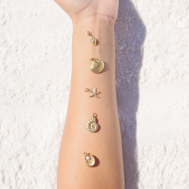 Lås upp skatten inom med vår Shell Charm with Pearl. Denna charm är en delikat symbol för skönhet, mystik och förvandling. Precis som havet fostrar en pärla i ett skal, representerar denna charm de dyrbara upptäckterna som kommer från livets resor. Tillverkad för att fånga essensen av elegans, den skimrande pärlan inbäddad inuti skalet fungerar som en påminnelse om att din sanna skönhet lyser inifrån. Dess enkla fäste möjliggör mångsidighet när det gäller att skapa personliga smyckeskombinationer, såsom charmarmband och halsband!