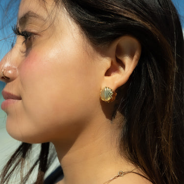 18k Gold PVD Rostfritt stål Shell Huggies örhängen / ERJ0066