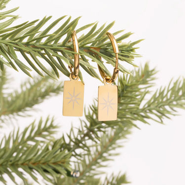Star Pendant Huggie Hoop örhängen är tillbehöret för att få dig att glänsa ! Tillverkade av högkvalitativ 18K guld PVD samt rostfritt stål, dessa bågeörhängen har härlig stjärncharm för att göra vilken outfit som helst fantastisk . Dessa klassiska örhängen kommer säkerligen att göra ett uttalande i vilken butik eller personlig samling som helst.