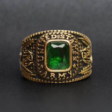18k Gold PVD Rostfritt stål United States Army Green Center Stone Ring / MCR6005
