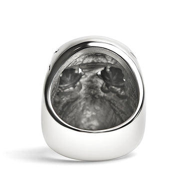 Detaljerad knäckt skalle med CZ -ögon rostfritt stål ring / SCR4033