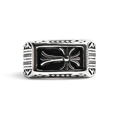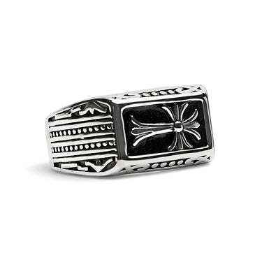 Lägg till denna detaljerade korsring i rostfritt stål till dina bästsäljande samlingar. Denna ring är ett unikt och elegant sätt att visa tro. Denna fantastiska ring är gjord av högkvalitativt rostfritt stål som gör den hållbar och har en detaljerad korsdesign.