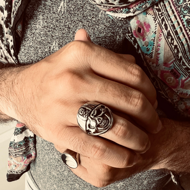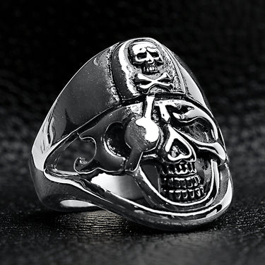 Alla detaljerade ögonlappar skalle med dödskallehatt Ringar i rostfritt stål är allergivänliga, så oroa dig inte för några utslag eller utslag!