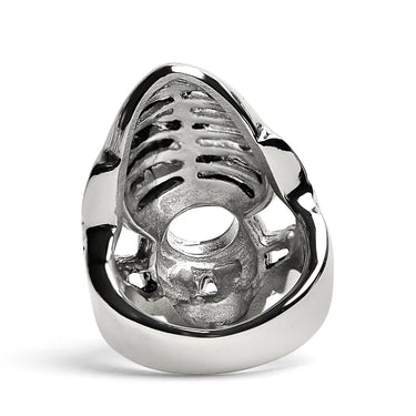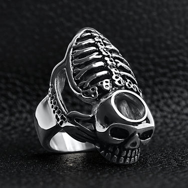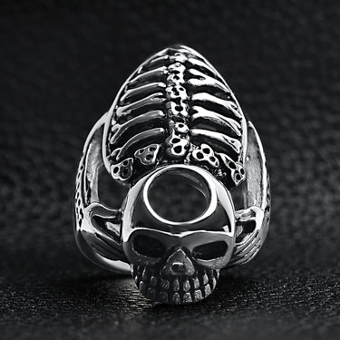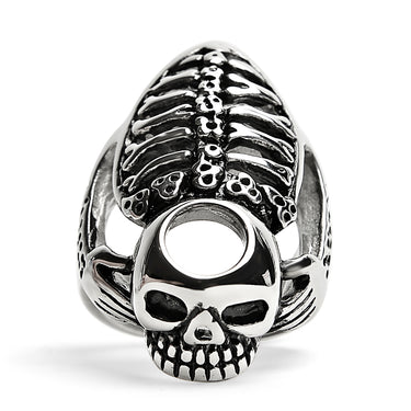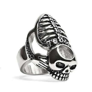 Denna detaljerade skelettring i rostfritt stål är det perfekta tillbehöret för alla som älskar skelett! Den mycket detaljerade designen är gjord av rostfritt stål vilket gör att den håller. Denna ring är bekväm att bära. Det är också allergivänligt och säkert för dem med känslig hud. Lägg till en touch av spöklik stil till din smyckessamling och bli den trendiga säljaren. Denna detaljerade skelettring i rostfritt stål är ett utmärkt val!