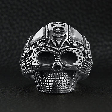 Grossistförsäljningen av rostfritt stål Ancient Warrior Guard Skull Ring är gjord med en egenutvecklad blandning av 316L kirurgiskt stål.