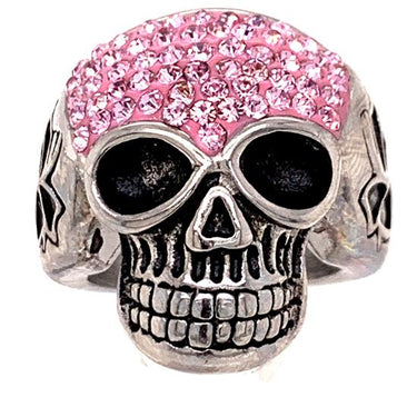 Denna badass ring är perfekt för alla som vill lägga till moderiktiga stilar till sin smyckeskollektion. Ringen i rostfritt stål har en skalledesign med små rosa CZ-stenar som accentuerar ögonen. Stenarna ger glamour till ringen medan det rostfria stålet säkerställer dess livslängd och gör den hypoallergen och den rostar inte eller oxiderar. Det är det perfekta uttalandet för alla som älskar dödskallar och vill visa upp dem på ett stilfullt sätt.
