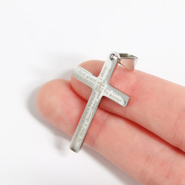- Alla Serenity Prayer Cross-hängen i rostfritt stål är hypoallergena, så oroa dig inte för finnar eller utslag!